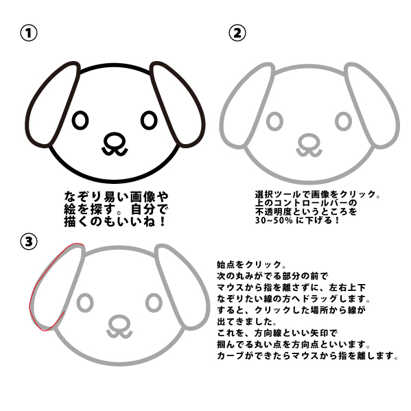 ペンツールを使いこなすには、数です、たくさん練習しましょう。