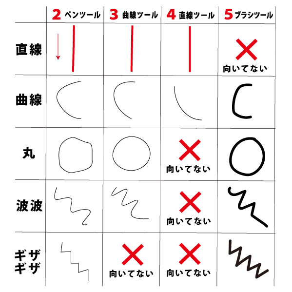 ペンツールはたくさんあるのですが、みてもらえばわかる通り